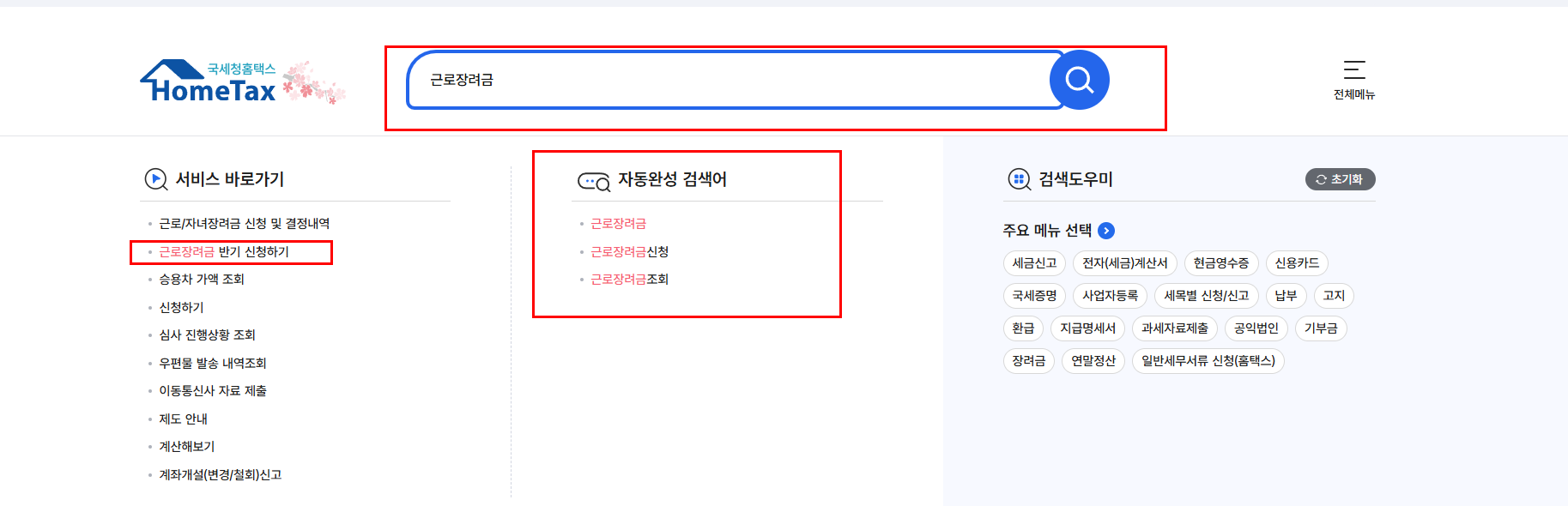 2. 검색창에 근로 장려금 입력!